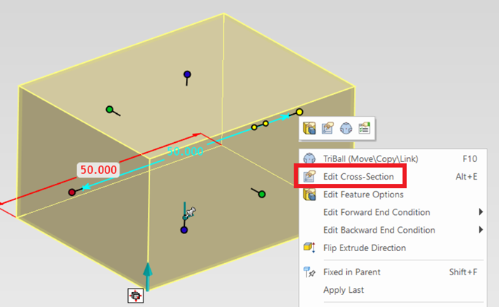 [3] Select the part at the Intellishape level (highlighted in yellow), right-click, and choose [Edit Cross-Section].