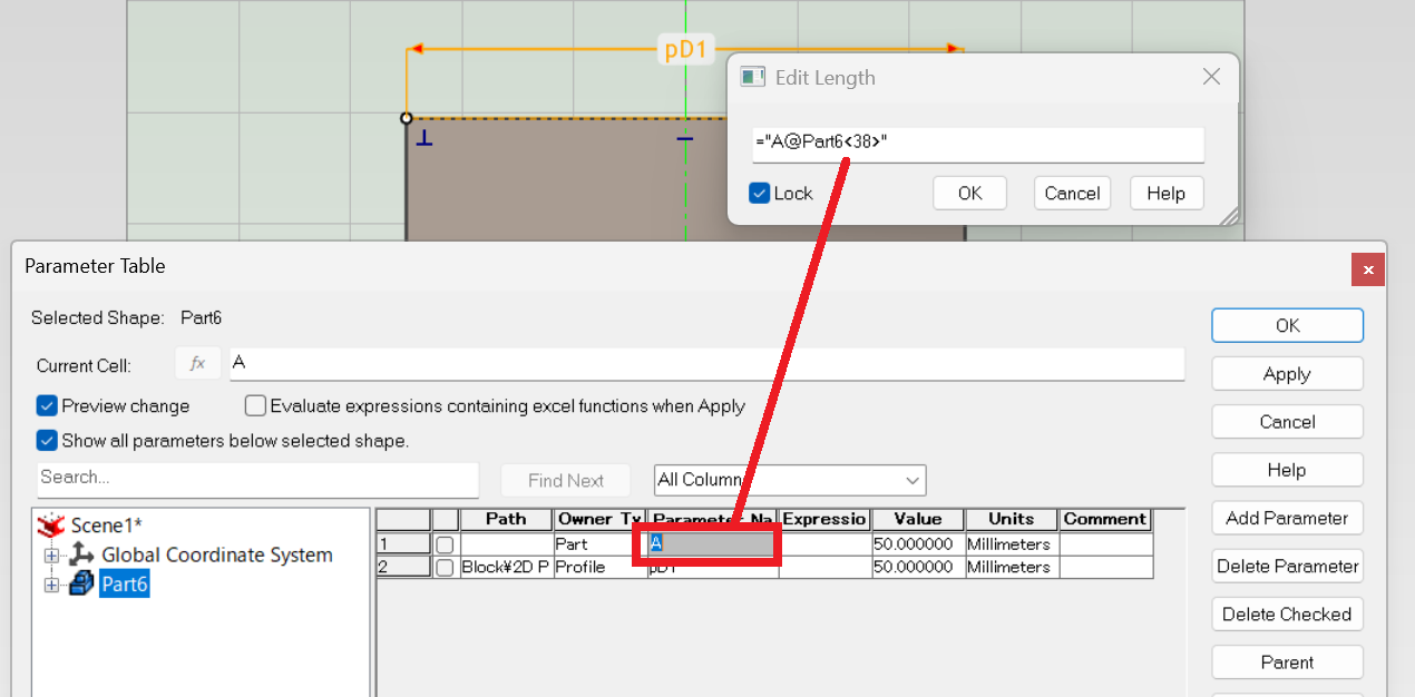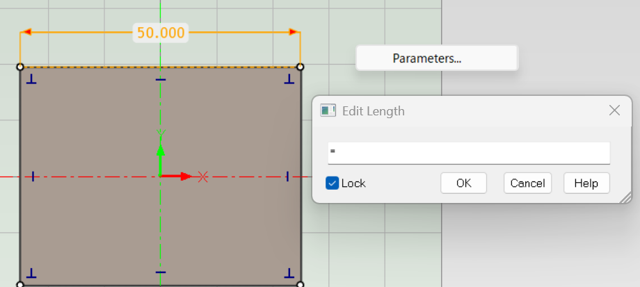 [8] Click [OK] to assign the parameter. The dimension is now parameterized.
