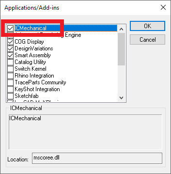 [2] Open the same dialog again, check [ICMechanical], and click [OK].