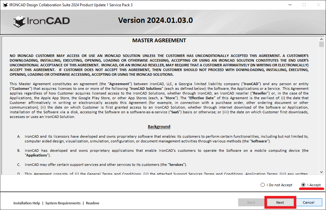 [I Accept], then click