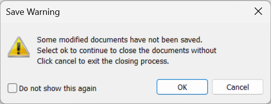 If [Do not show this again] is checked, the message will no longer be displayed even if unsaved files remain.
