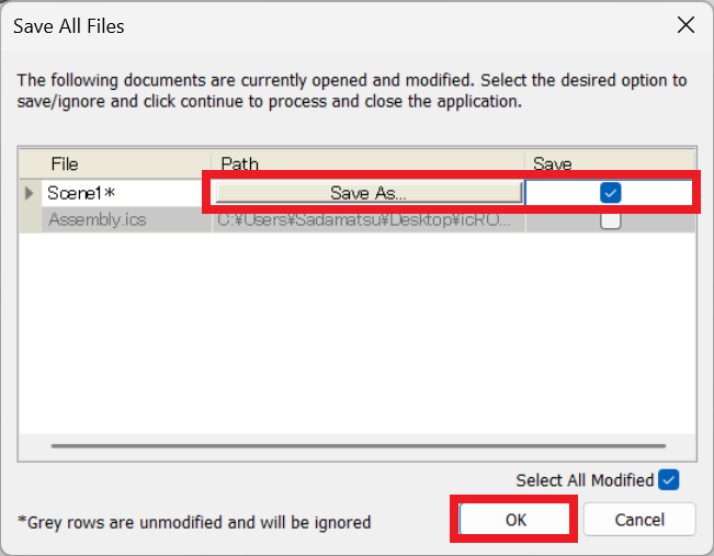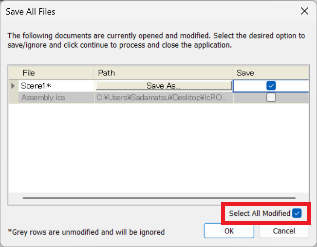 For files that have already been saved but contain modifications, checking [Select All Modified] will automatically enable the [Save] option.