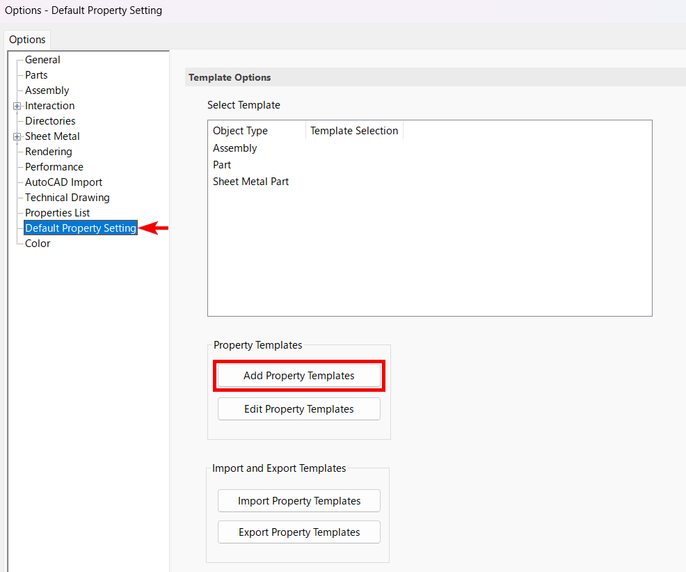 [3] Click [Add Property Templates] and choose the custom property you wish to include.