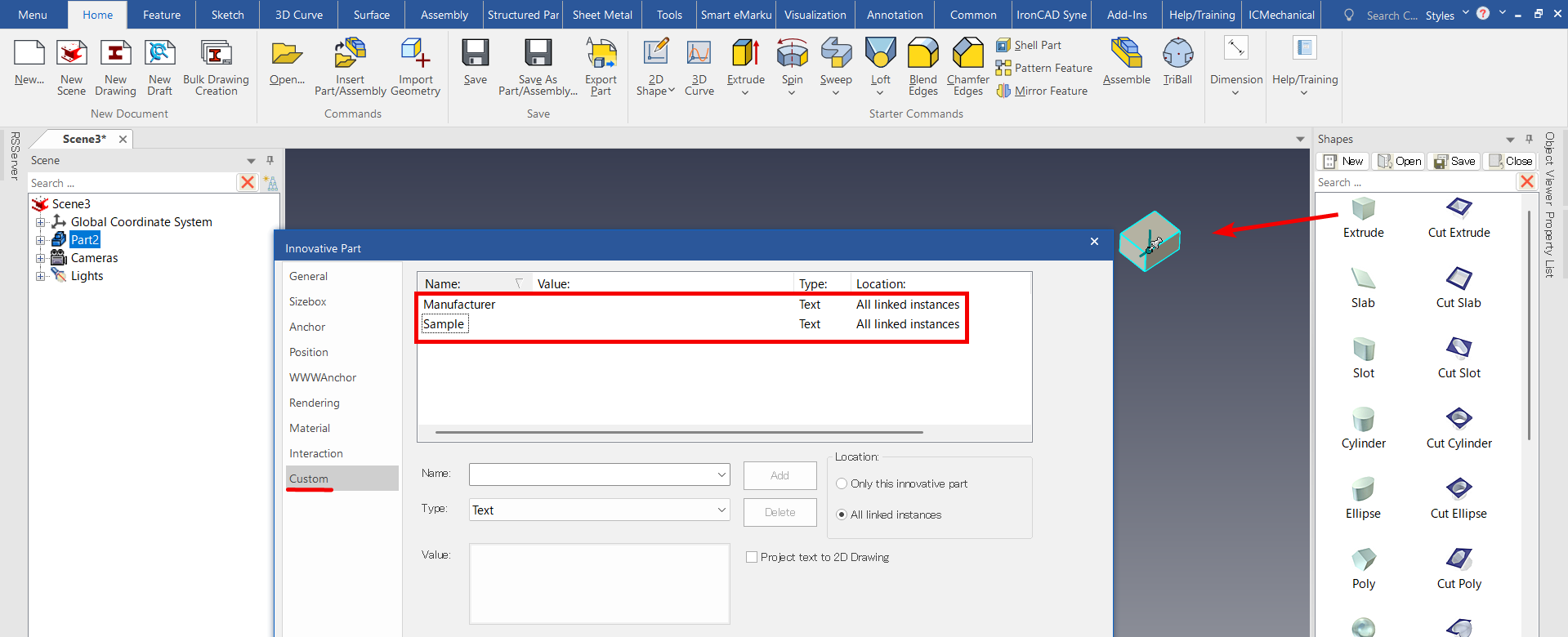 Combo box values can only be defined at the template level. They cannot be used directly within Part Properties.