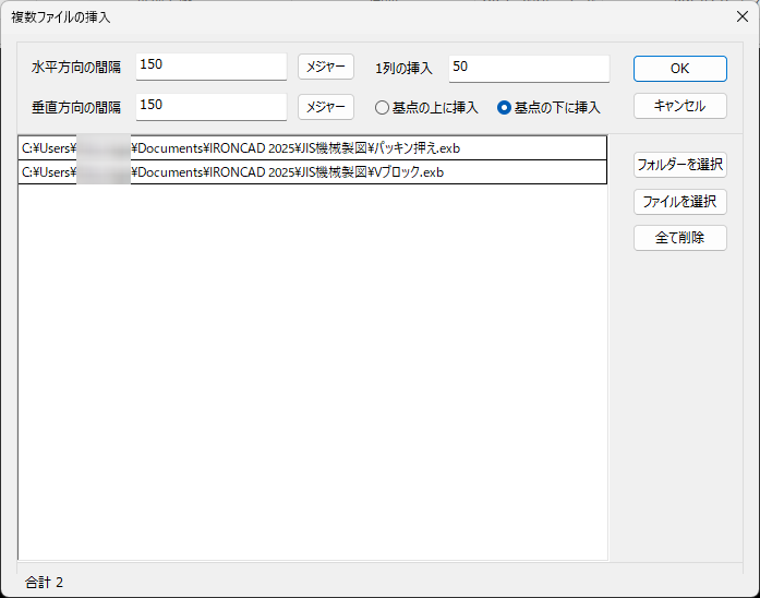 〔2〕[複数ファイルの挿入]ダイアログ が表示されます。