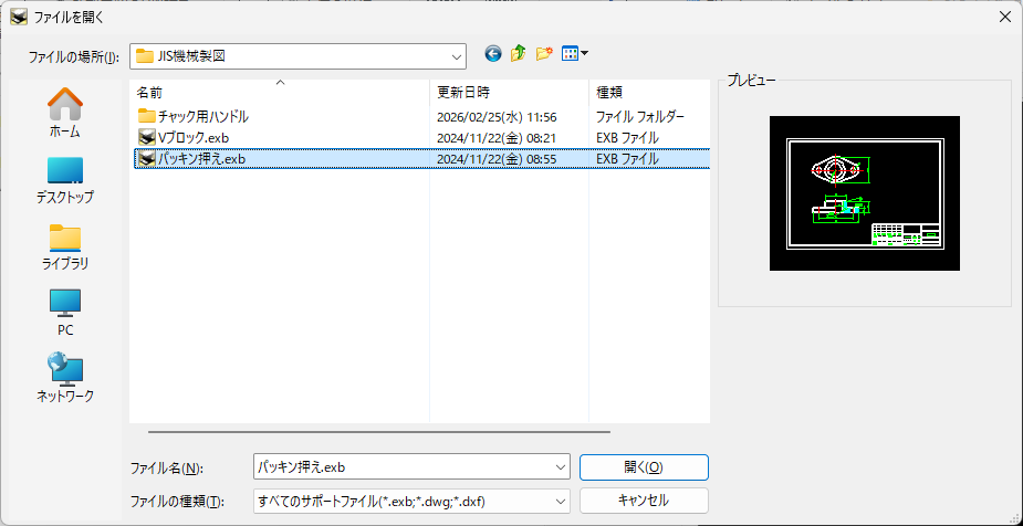 任意のファイルを選択し、[開く] をクリックすると選択されます。
