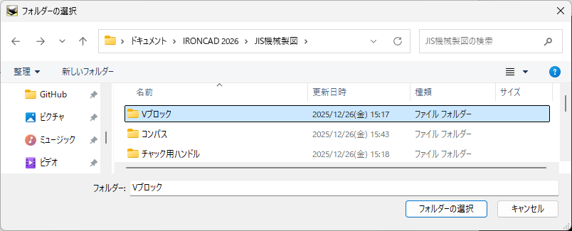 [フォルダーを選択] をクリックすると、[フォルダーの選択]ダイアログ が表示されます。
