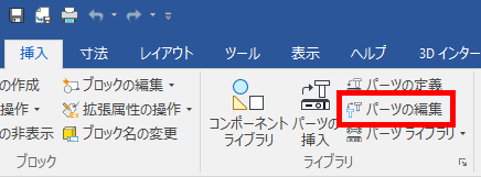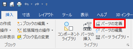 〔1〕[挿入]タブ → [ライブラリ]グループ → [パーツの定義] を実行します。
