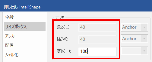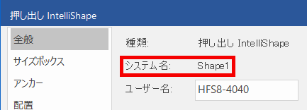 例 システム名:Shape1 サイズボックス:長さ の場合