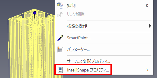 〔1〕 パーツを IntelliShapeレベル(黄色い状態)で選択し、右クリックから [IntelliShapeプロパティ] を選択します。