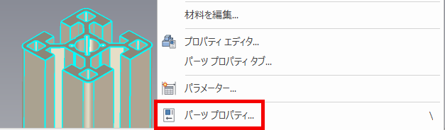 〔4〕 再度パーツを選択し、右クリックから [パーツプロパティ] を選択します。