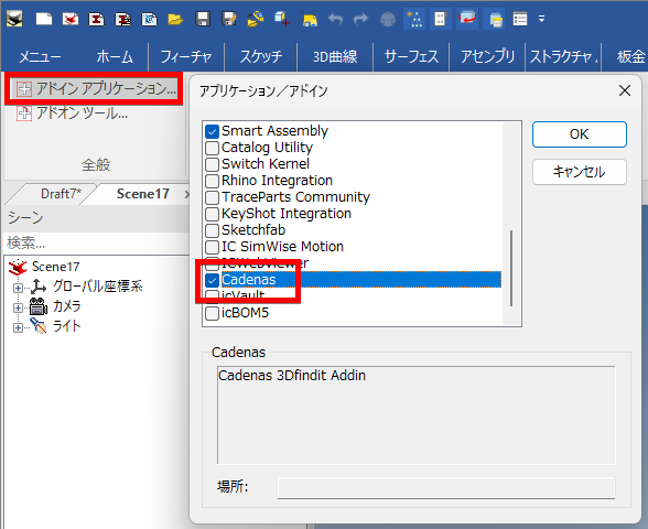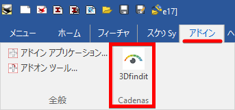 〔1〕[アドイン]タブ → [Cadenas]グループ → [3Dfindit] をクリックします。