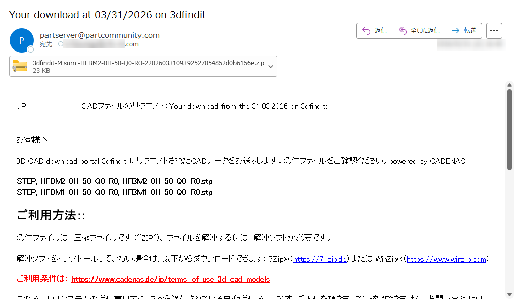 登録しているメールアドレスにモデルのデータがメールで送付されます。