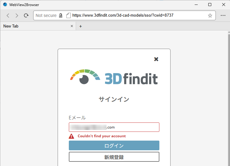 登録されていない状態で、[ログイン] をクリックすると下図のメッセージが表示されます。